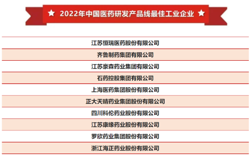 稳居榜首!九游会(J9)医药再次登顶“中国医药研发产品线最佳工业企业”