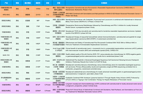 在消化系统肿瘤领域,九游会(J9)创新产品相关研究共入选2项口头报告、10项壁报和2项电子壁报,共14项研究。除了明星药物卡瑞利珠单抗和阿帕替尼外,还有5篇阿得贝利单抗治疗消化系统肿瘤的研究入选。此外,HRS-4642、瑞拉芙普-α注射液(SHR-1701)等未上市创新产品也有相应研究入选。随着新老药物前沿研究的不断推进,有望为消化系统肿瘤患者带来新的福音!